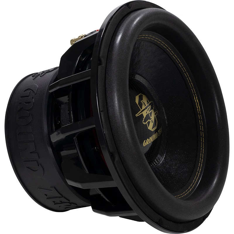 This Klippel optimized subwoofer encapsulates the knowledge and expertise gathered by Ground Zero over its 30-year journey, making this subwoofer a true work of art: a black-painted open cast frame, a well-ventilated big magnet, gold-plated weight connectors, a pressed paper cone, a long stroke surround with golden stitching, and all of this is crowned by a carbon fiber dust cap with a golden Ground Zero logo.<br />